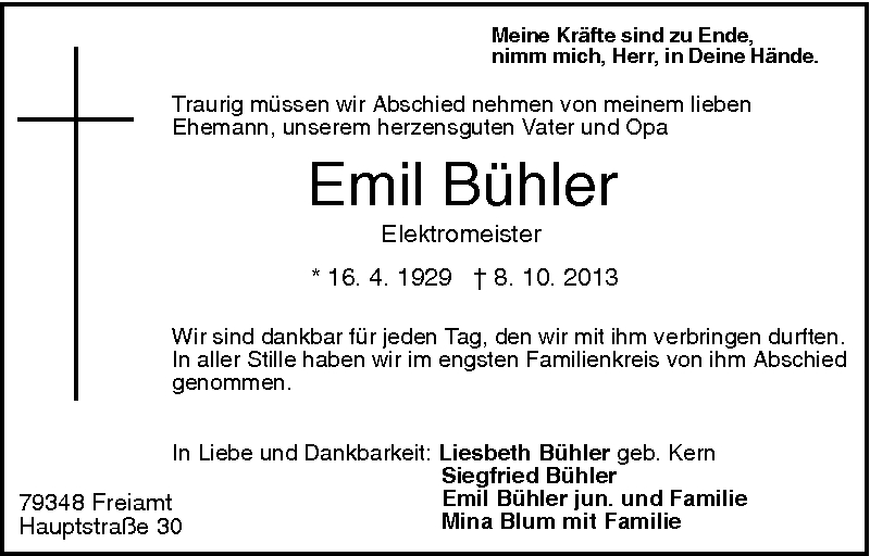 Traueranzeige in der Badischen Zeitung am 17.10.2013