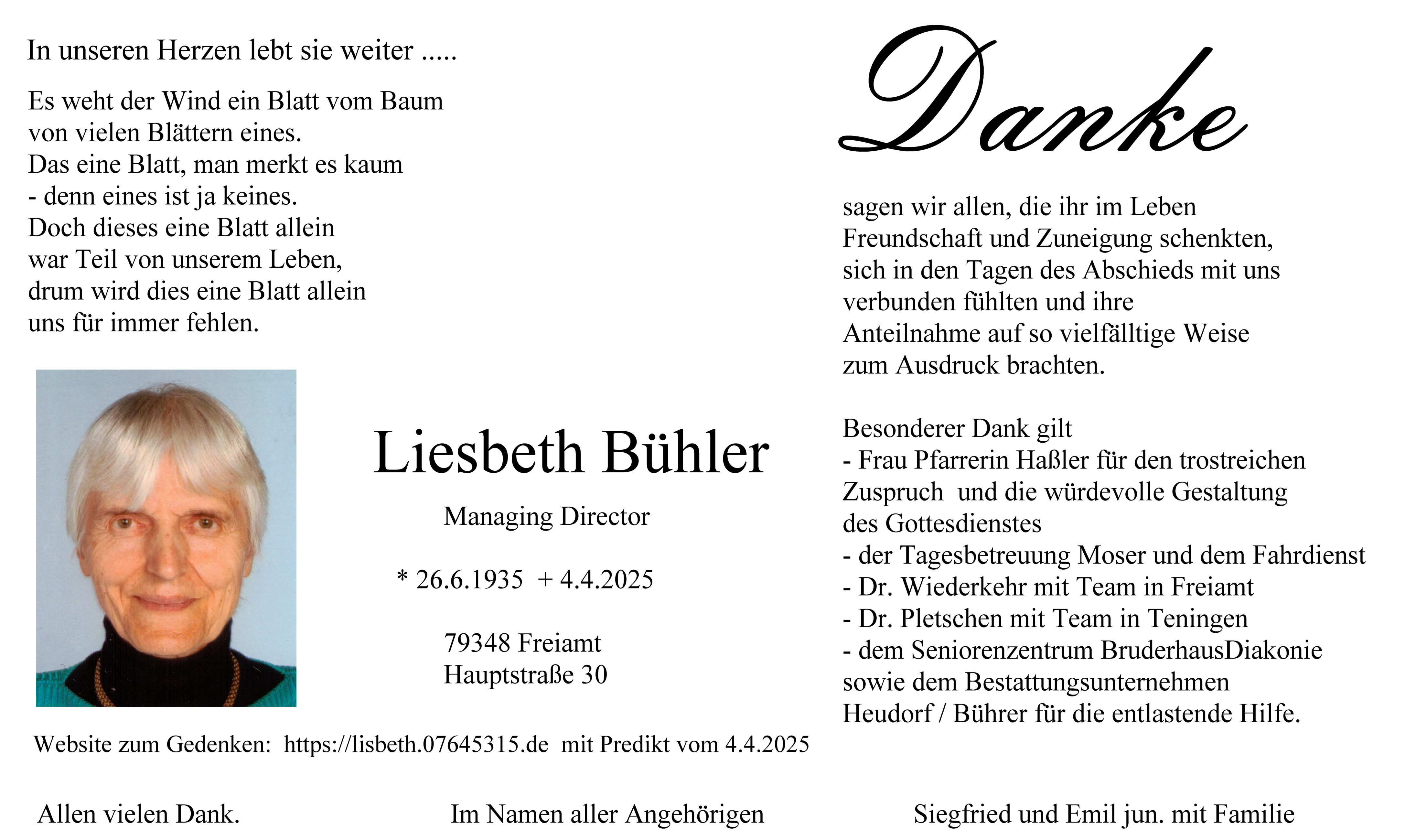 Auch an dieser Stelle wollen wir Emil und Lisbeth Bühler gedenken und werden deshalb hier einiges zusammentragen.